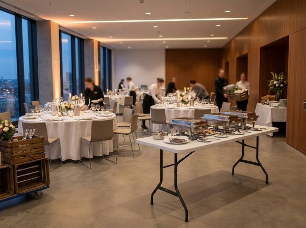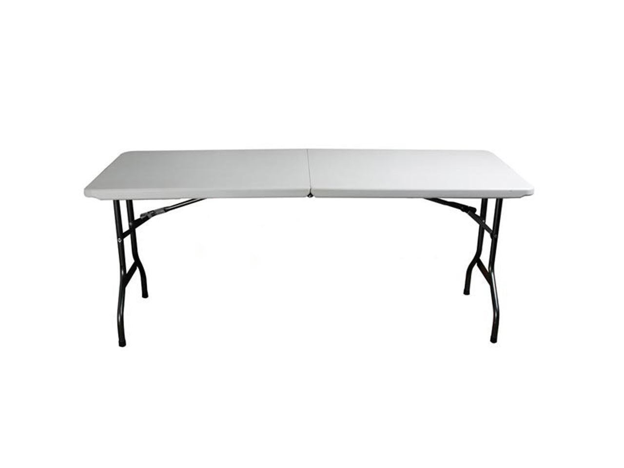 Detta hopfällbara cateringbord är kompakt, lätt att transportera och robust nog att klara tyngre belastning. Bordets starka och härdade plastyta tillsammans med låsbara ben ger stabilitet, samtidigt som benen enkelt fälls ihop under bordsskivan vid förvaring. Bordet är vädertåligt och tål även högre temperaturer, vilket gör det idealiskt för både inomhusbruk och utomhusevent.