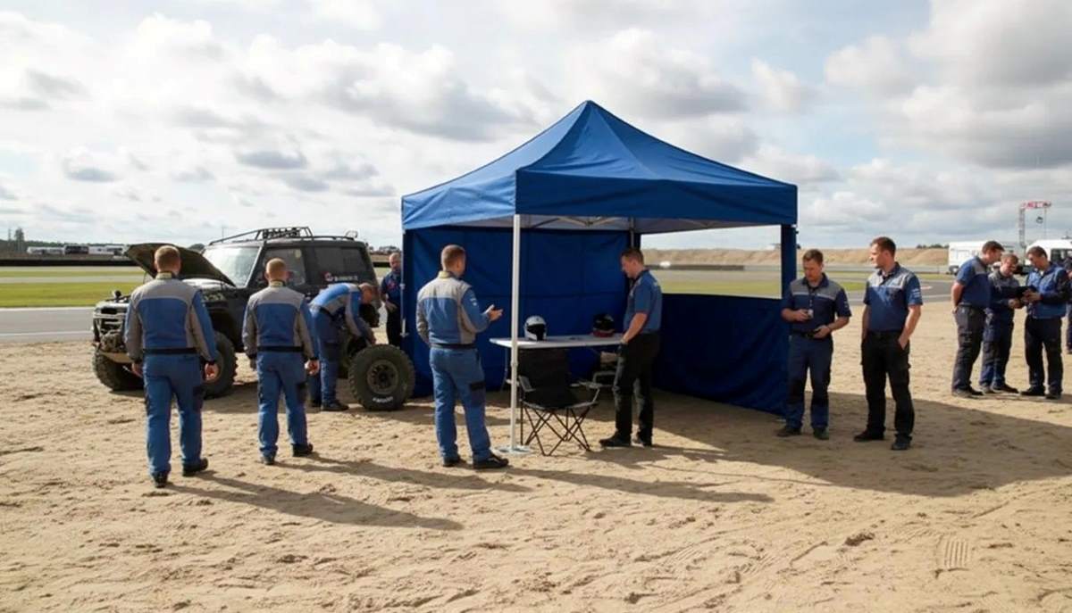 EasyUP depåtält används som tillfällig arbetsplats där service, förberedelser och logistik står i fokus. I tävlingssammanhang fungerar tältet som en samlingspunkt för team, utrustning och fordon, medan det i andra miljöer används för reparationer, förvaring eller administration. Den skyddade ytan gör att arbetet kan genomföras strukturerat och effektivt, oberoende av yttre förhållanden.