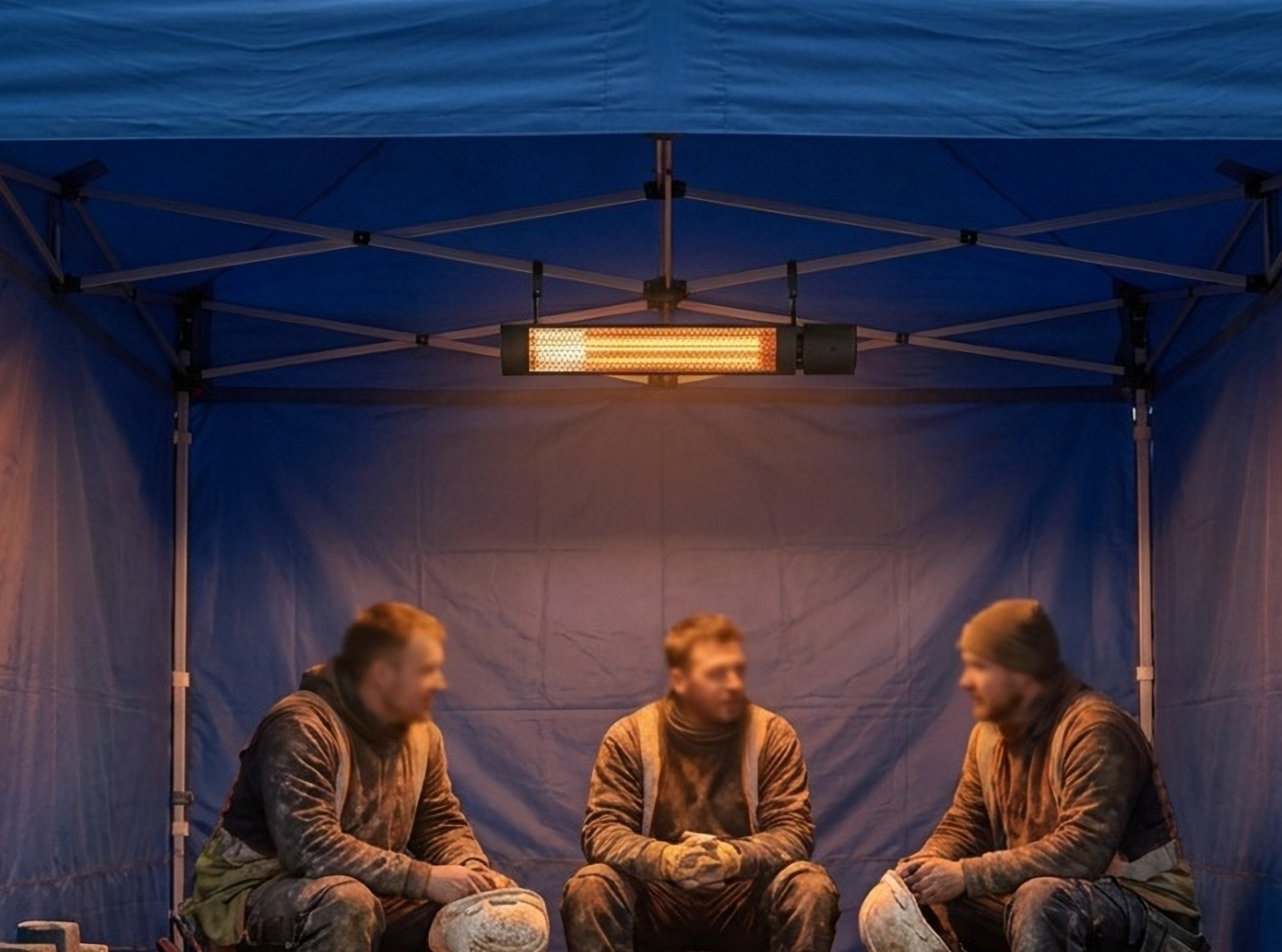 Denna infraröda värmelampa för utomhusbruk och inomhusmiljöer ger stark värme med ett behagligt orange ljus och ultra låg bländning. Lampan passar utmärkt på terrasser, under tälttak, verandor samt café- och restaurangterrasser. Den har två effektlägen som styrs enkelt med fjärrkontroll och kan monteras både horisontellt och vertikalt.