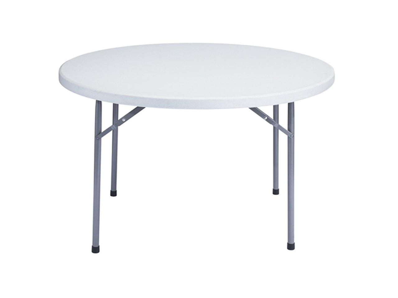 Det runda klappbordet är kompakt och lätt att transportera, samtidigt som den starka och härdade plastytan klarar tyngre belastning. Bordets låsbara ben kan fällas under bordsskivan, vilket gör det enkelt att förvara och flytta. Bordet är vädertåligt och kan användas både utomhus och i varma inomhusmiljöer, vilket gör det perfekt för företag vid event, konferenser, mässor eller mottagningar.