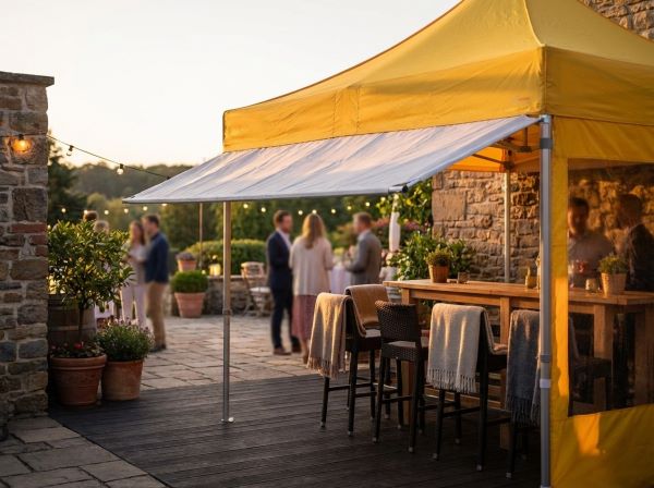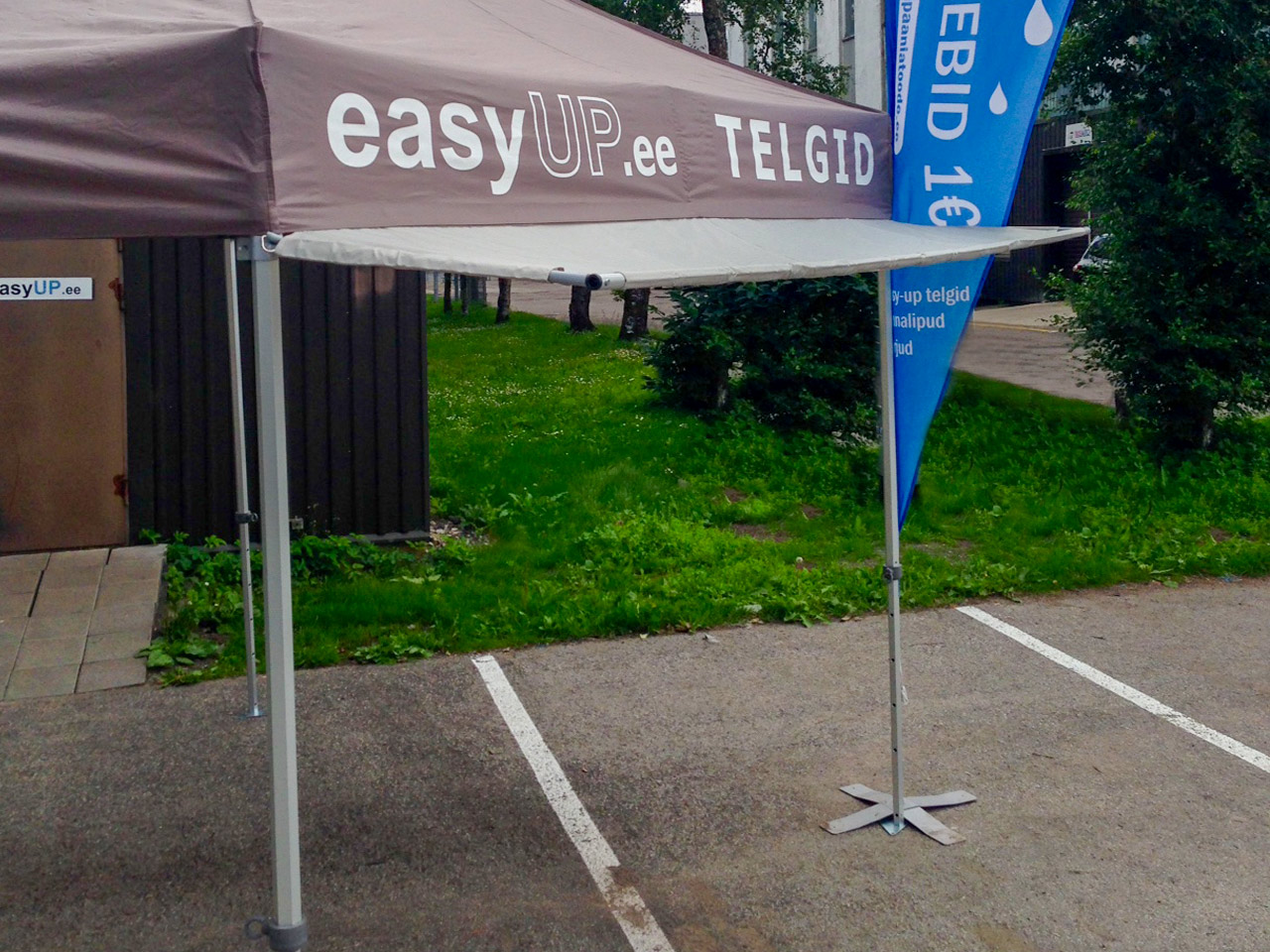 Förläng skyddet på ditt EasyUp- eller PopUp-tält med en praktisk och lättinstallerad markis. Markisen fästs enkelt på tältets ram och ger extra skugga eller skydd mot regn, vilket gör ditt tält mer mångsidigt och bekvämt för utomhusevenemang, mässor eller trädgårdsfester.
