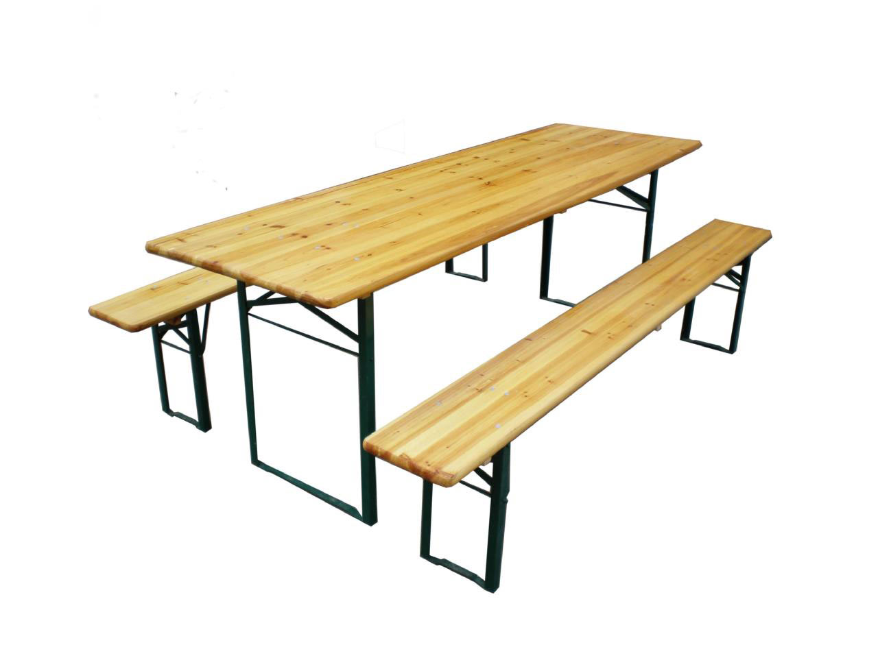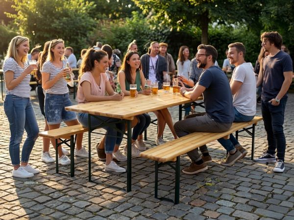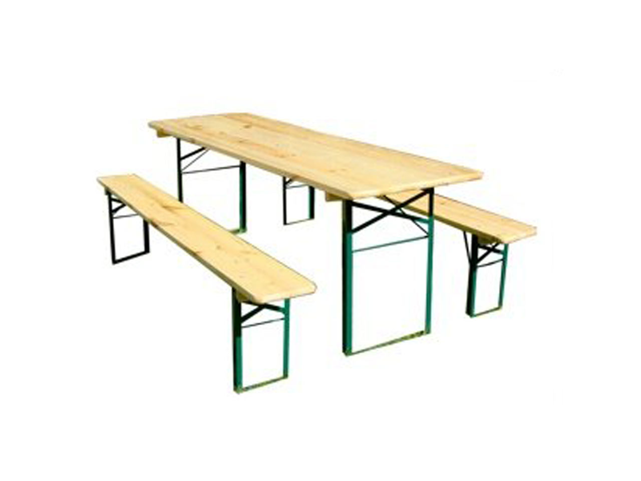 Detta ölmöbelset består av ett bord och en bänk och är enkelt att fälla ihop, vilket gör det smidigt att transportera och förvara. Setet är slitstarkt och praktiskt, perfekt för företag vid event, festivaler, restauranger eller uteserveringar som behöver flexibla sittlösningar.
