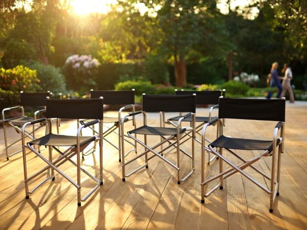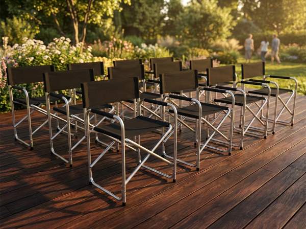 Denna hopfällbara regissörsstol är särskilt framtagen för event, mässor, uthyrning, friluftsverksamhet och personalutrustning. Stolen har en stabil ram av aluminiumrör med 25 mm diameter, vilket ger hög hållfasthet även vid frekvent användning.