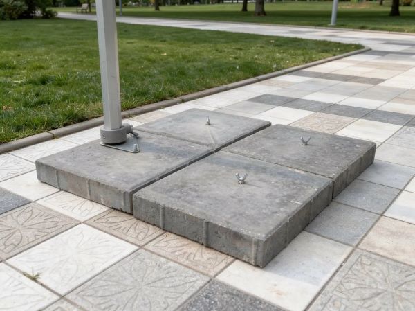 Praktiska och stabila betongvikter för säker förankring av tält. Setet innehåller fyra betongplattor i storleken 30 × 30 cm, försedda med förborrade hål samt fyra fästbultar för enkel montering på tältramen. Varje platta väger 12 kg, vilket ger en total vikt på 48 kg per set.