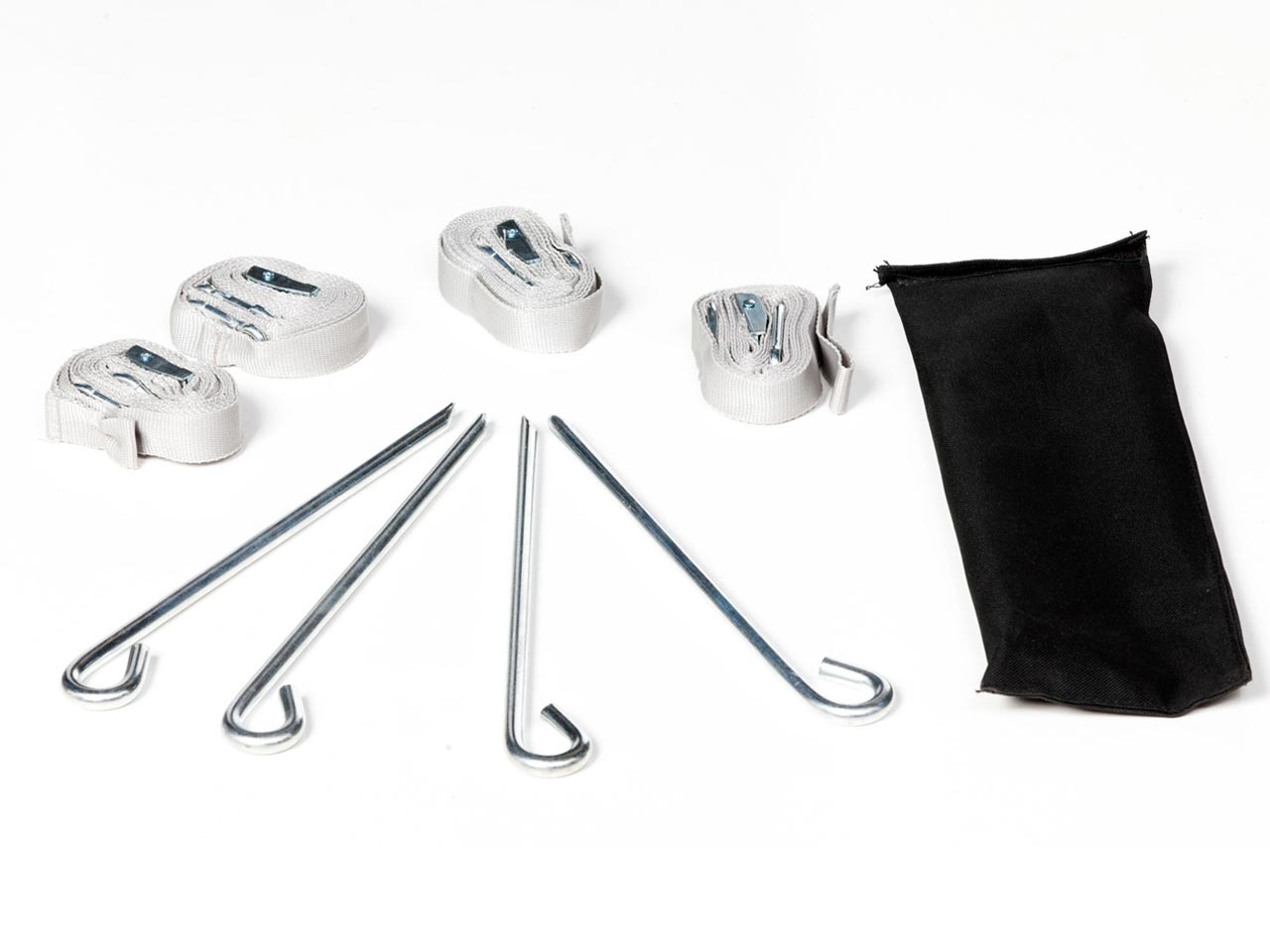Setet innehåller fyra väggar, transportväska (utan hjul), samt tältpinnar och spännband för enkel uppsättning. Tälten finns på lager och är redo för omedelbar leverans.